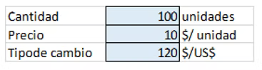 Para reducir considerablemente los errores en la construcción de fórmulas y en la carga de supuestos, es buena norma especificar siempre las unidades de cada valor presentado. Puede ser una aclaración al lado de la celda, un encabezado para toda la fila o columna (cuando varias celdas comparten la unidad), o puede ubicarse en el título de una tabla.